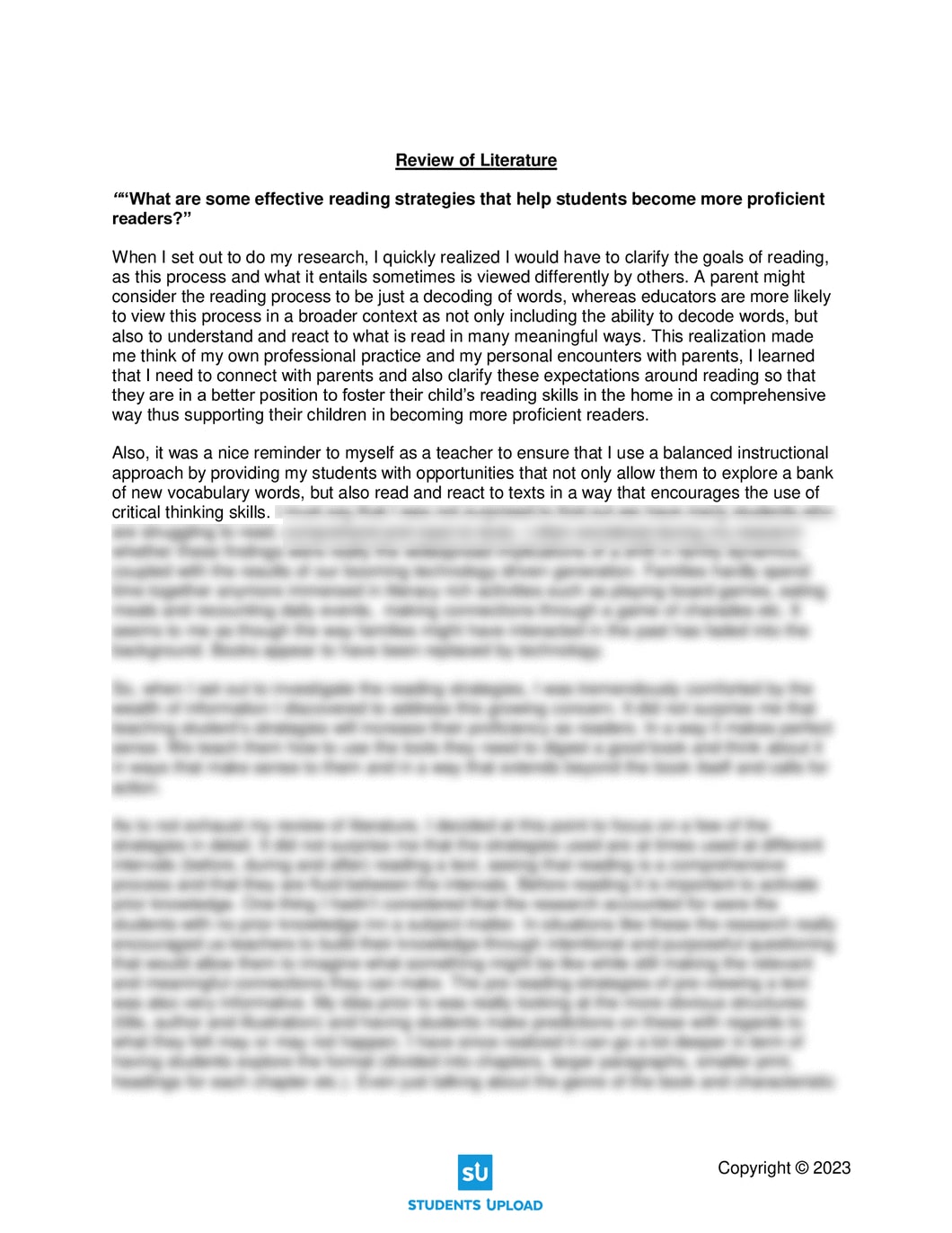 A review of literature on effective strategies that help readers become more proficient in reading.
